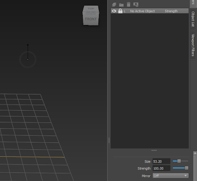 The strength of the tool can also be changed in a similar way; this can be done by holding the 'M' key and dragging up and down on the left mouse button or stylus. As with the size of the tool, dragging upwards increases the strength: